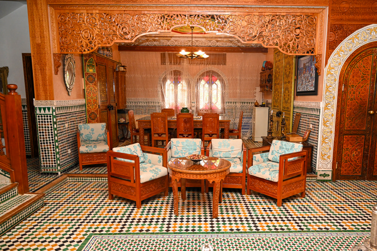 Riad ALHAMBRA vous accueille dans un cadre raffiné où confort, détente et authenticité marocaine se rencontrent. Pensé pour s’adapter à toutes les envies, ce riad de charme dispose de trois salons aux ambiances distinctes, ainsi que de boudoirs intimistes offrant une vue imprenable sur les moindres détails de la maison, idéals pour savourer un thé à la menthe en toute quiétude.
