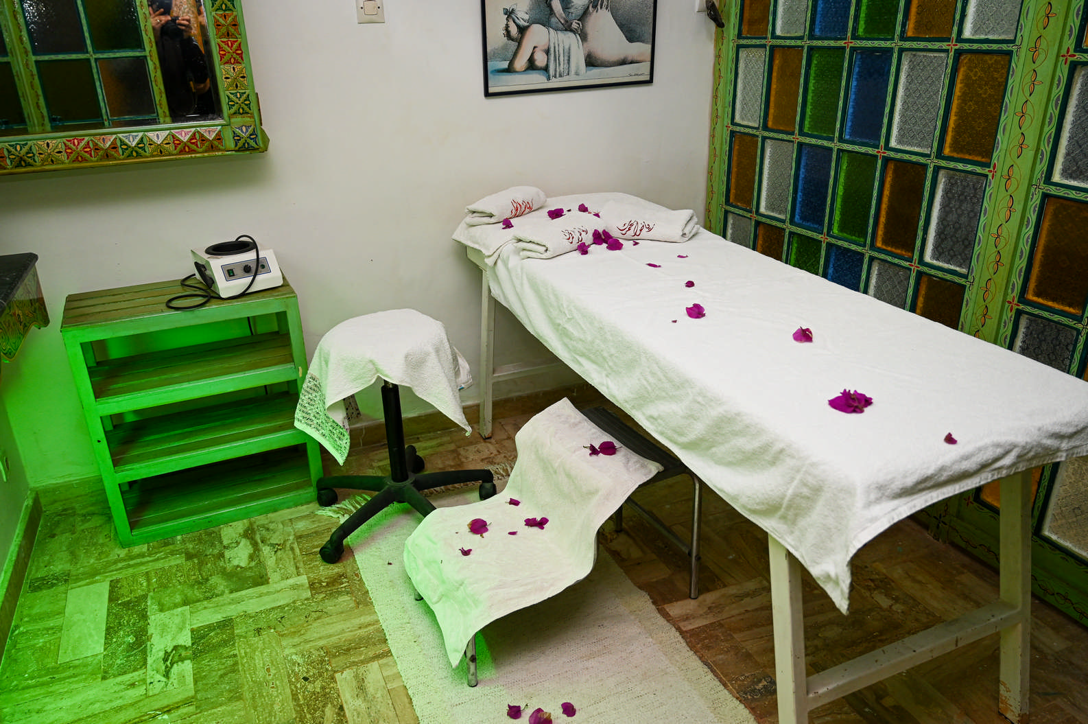 Dans une atmosphère intime et apaisante, chaque soin est pensé comme un moment hors du temps. Le spa du Riad est une parenthèse de bien-être, idéale après une journée de découverte ou simplement pour le plaisir de prendre soin de soi.